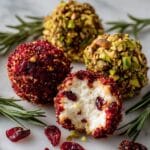 These 3-Ingredient Holiday Cheese Truffles are a festive, elegant appetizer featuring creamy herbed cheese rolled in crunchy pistachios and sweet dried cranberries. Perfect for holiday gatherings, they are easy to make and impress with minimal effort.