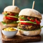 - Be gentle when flipping the burgers as they can be fragile due to the bean and mushroom base.