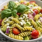This Avocado Pasta Salad is a delicious and healthy dish featuring fusilli pasta tossed with a creamy avocado dressing, fresh vegetables, and optional feta cheese. Perfect for a light lunch or a refreshing side, this recipe combines the richness of avocado with the crispness of cucumber, cherry tomatoes, and herbs for a delightful blend of flavors and textures.