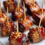 These Bacon-Wrapped Dates with Goat Cheese & Dark Chocolate are a perfect blend of sweet, salty, and savory flavors. Stuffed with creamy goat cheese and optional rich dark chocolate, then wrapped in crispy bacon and finished with a hint of maple syrup and cayenne pepper glaze, these bite-sized appetizers offer a delicious balance of textures and tastes, ideal for parties or special occasions.