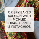 Keywords: baked salmon, pickled cranberries, pistachios, breadcrumb crust, thyme, sumac, healthy seafood recipe, oven baked fish