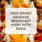 This Baked Sausage Breakfast Hash is a hearty, flavorful one-pan breakfast perfect for weekend mornings or meal prep. Tender seasoned potatoes combined with roasted capsicum, onion, juicy pork sausages, and crispy bacon come together in a rustic oven bake. Finished with baked eggs cracked right into the hash, this recipe delivers a warm and satisfying start to your day with minimal cleanup.