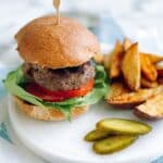This beef burger with sweet potato chilli chips is a flavorful twist on a classic favorite. Juicy, seasoned beef patties pair perfectly with spicy roasted sweet potato chips for a satisfying and wholesome meal that’s easy to make at home.