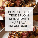 This elegant Beef Tenderloin Roast with Marsala Cream Sauce and Smashed Potatoes is a perfect centerpiece for special occasions. The tender beef is seasoned and roasted to medium-rare perfection, complemented by rich, savory marsala cream sauce with caramelized mushrooms. Crispy smashed baby potatoes sprinkled with Parmesan round out this indulgent meal.