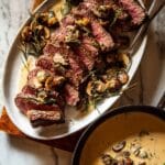 This elegant Beef Tenderloin Roast with Marsala Cream Sauce and Smashed Potatoes is a perfect centerpiece for special occasions. The tender beef is seasoned and roasted to medium-rare perfection, complemented by rich, savory marsala cream sauce with caramelized mushrooms. Crispy smashed baby potatoes sprinkled with Parmesan round out this indulgent meal.