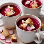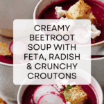 This vibrant beetroot soup with feta, radish, and crunchy sourdough croutons is a perfect blend of earthy, tangy, and fresh flavors. Whether served hot or chilled, it makes an impressive starter or a light meal that’s both nutritious and satisfying.