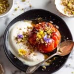- Serve: Once baked, serve the peaches warm with a scoop of ice cream or whipped cream. Drizzle with the caramelized sauce from the baking dish and optionally sprinkle chopped nuts on top for extra texture and flavor.