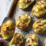 - Keep the potato skins intact by scooping carefully with a spoon to avoid tearing.