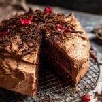 This indulgent Brown Butter Banana Cake with Chocolate Caramel Frosting combines moist, flavorful banana cake enhanced by nutty browned butter with a rich, luscious chocolate caramel frosting. Perfect for celebrations or a special dessert treat, the cake layers are topped with chocolate shavings for added texture and visual appeal.