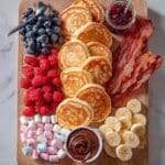 This Brunch Pancake Sharing Board is perfect for a cozy weekend treat with family or friends. Crispy bacon paired with fluffy homemade pancakes and an array of delicious toppings makes every bite exciting. It’s a fun and interactive way to enjoy brunch together.