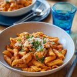 A creamy, flavorful Cajun chicken pasta recipe featuring tender chicken chunks simmered in a spicy tomato sauce with garlic, cream, and parmesan, served with perfectly cooked penne pasta. This easy one-pan dish is perfect for a comforting weeknight meal with a touch of Southern spice.
