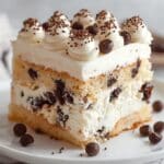 - Garnish and chill: Sprinkle the remaining mini chocolate chips evenly over the whipped cream layer. Refrigerate the cake for at least 2 hours before serving to let the flavors meld and the filling set.