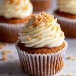 Delight in these moist and flavorful Carrot Cake Cupcakes with a luscious cream cheese frosting. Enhanced by juicy crushed pineapple, shredded carrot, and a touch of warming cinnamon, these cupcakes are topped with a smooth, fluffy cream cheese frosting and a sprinkle of crunchy walnuts or pecans for the perfect balance of texture and taste.