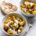 A flavorful and hearty cauliflower and potato curry made with aromatic spices, tomatoes, and fresh herbs. This vegetarian Indian-inspired dish is simmered gently until the vegetables are tender, served with naan bread and natural yogurt for a comforting meal.