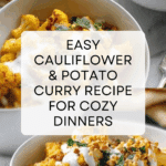 This cauliflower and potato curry is a comforting, flavorful vegetarian dish that’s perfect for any night of the week. Made with a blend of warming spices and tender vegetables, it pairs wonderfully with naan bread and a dollop of natural yogurt.