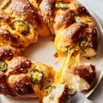 These Cheesy Jalapeño Pretzel Sticks are soft, flavorful pretzel treats filled with sharp cheddar cheese and spicy jalapeños. The dough is boiled briefly in a baking soda bath to give the pretzels their iconic chewy texture, then baked until golden and bubbly. Perfect as a savory snack or appetizer with a kick of heat and melty cheese in every bite.
