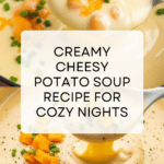 This Cheesy Potato Soup is a rich and comforting dish perfect for chilly days. Creamy mashed potatoes blend with caramelized onions and sharp cheddar cheese to create a savory, satisfying meal that’s easy to make at home.