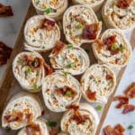Keywords: Chicken Bacon Ranch Pinwheels, appetizer, party food, easy snack, creamy chicken roll-ups, ranch seasoning, bacon recipes