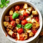 This chicken bake with garlic croutons is a delightful, easy-to-make dish that combines tender chicken, fresh tomatoes, melted mozzarella, and crunchy, flavorful croutons. Perfect for a weeknight dinner, it’s packed with fresh herbs and rich flavors that everyone will enjoy.
