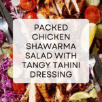 Keywords: chicken shawarma, shawarma salad, grilled chicken, Middle Eastern salad, tahini dressing, healthy chicken recipe