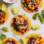 These Chili Lime Shrimp Tacos with Cabbage Slaw offer a vibrant and zesty twist on a classic favorite. Tender shrimp are seasoned with Tajin and lime, sautéed in butter, then nestled in warm toasted tortillas with a refreshing cabbage slaw, pickled onions, and fresh cilantro. Perfect for a quick and flavorful weeknight meal or a casual gathering.