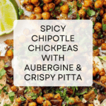 This chipotle chickpeas with aubergine and pitta recipe is a flavorful, vibrant dish perfect for a light lunch or a tasty snack. Combining smoky chipotle, creamy tahini lime sauce, and crisp toasted pittas, it’s a satisfying treat that’s easy to prepare.