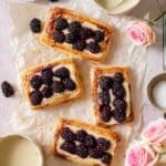 - Toss Berries: In a small bowl, gently combine the blackberries, granulated sugar, and lemon juice. Distribute this berry mixture evenly over the cream cheese on each pastry.