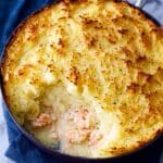 Keywords: fish pie, creamy fish pie, leek pie, seafood pie, smoked haddock pie, salmon pie, king prawns recipe, comfort food, British cuisine