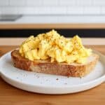 - Serve: Transfer the scrambled eggs to a plate and serve immediately, ideally with toast or your favorite breakfast sides. Enjoy warm.