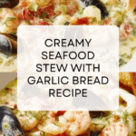 Keywords: seafood stew, creamy seafood, seafood recipe, easy stew, dill, garlic bread accompaniment