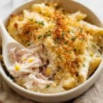This Tuna Mornay recipe is a creamy, comforting casserole pasta bake featuring tender penne pasta combined with a rich white sauce, flaked tuna, and sweet corn. Topped with a crunchy blend of panko breadcrumbs and parmesan, it’s baked until golden and bubbling, making for a perfect hearty meal that’s easy to prepare and deliciously satisfying.