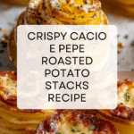 These Crispy Cacio e Pepe Roasted Potato Stacks combine thinly sliced Yukon gold potatoes layered with a flavorful blend of Pecorino Romano and Parmigiano Reggiano cheeses, garlic, lemon zest, and freshly ground black pepper. Baked until golden and crispy, these elegant potato stacks make a perfect side dish or appetizer with a delightful balance of savory, tangy, and peppery flavors.