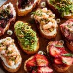 Keywords: crostini, appetizers, Italian recipes, party snacks, easy crostini toppings, smoked salmon crostini, Caprese crostini, Mediterranean appetizers, shrimp crostini, holiday snacks