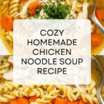This Easy Chicken Noodle Soup recipe features tender shredded chicken, aromatic herbs, and wide egg noodles in a flavorful homemade broth. Perfect for a comforting meal, the soup is cooked on the stovetop with a blend of classic seasonings and fresh vegetables, ensuring a wholesome and satisfying dish that’s great for any season.