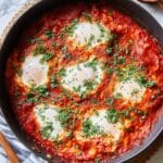 This Easy Shakshuka recipe features a delicious and comforting North African and Middle Eastern dish made with poached eggs in a spicy, savory tomato and bell pepper sauce, seasoned with aromatic spices like paprika and cumin. Perfect for breakfast, brunch, or any meal, it’s simple to prepare and bursting with flavor.
