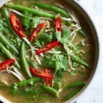 - Finish with Bean Sprouts and Garnish: Stir in the beansprouts and cook for 1 minute more. Serve the curry garnished with coriander leaves, shredded kaffir lime leaves, and sliced red chilli if desired, accompanied by boiled jasmine rice.
