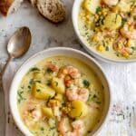 A flavorful and comforting Garam Masala Prawn & Corn Soup combining aromatic Indian spices with tender prawns, sweetcorn, and creamy potatoes in a lightly spiced broth, perfect for a hearty lunch or dinner.