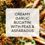 A creamy and comforting Garlic Cream Bucatini with fresh asparagus, sweet peas, and a hint of lemon, topped with golden crispy breadcrumbs for added texture. Perfectly cooked bucatini pasta is tossed in a rich garlic cream sauce that balances fresh and vibrant flavors in a simple yet elegant weeknight meal.