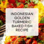 Golden Turmeric Fish is a flavorful Indonesian baked fish recipe featuring white fish fillets marinated with lime and salt, then slathered with a vibrant turmeric curry paste made from fresh turmeric, ginger, garlic, shallots, and aromatic herbs. Baked to juicy perfection and served with a spicy Sambal Tomat topping made from cherry tomatoes, red chili, and coriander, this dish offers a bright, fragrant, and healthy meal ideal for an easy and impressive dinner.