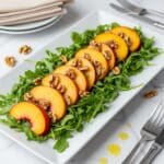 A fresh and vibrant Grilled Peach Salad featuring juicy peaches, peppery arugula, toasted walnuts, and a tangy honey-Dijon vinaigrette. This salad balances sweet, smoky, and savory flavors, perfect for a light lunch or a side dish during warm weather.