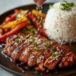 - Serve and garnish: Drizzle the thickened teriyaki sauce over the grilled chicken. Sprinkle toasted sesame seeds and chopped green onions on top for a fresh, nutty finish. Serve immediately with steamed rice or your favorite vegetables.