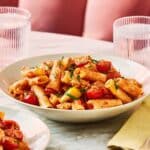 Halloumi Pasta with Cherry Tomatoes, Courgettes, and Olives Recipe