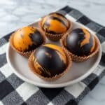 Celebrate Halloween with these fun and festive Halloween Hot Chocolate Bombs featuring colorful black and orange candy melts. These chocolate spheres are filled with hot chocolate mix and marshmallows, perfect for a cozy and spooky treat. Simply place a bomb in a mug and pour hot milk to watch it melt and release a rich, creamy hot chocolate inside.
