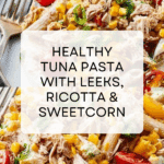 A wholesome and flavorful healthy tuna pasta made with wholemeal penne, fresh vegetables, and a creamy ricotta and tuna mixture. This quick and nutritious dish combines the sweetness of cherry tomatoes and corn with the aromatic freshness of basil for a satisfying meal.