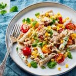 A wholesome and flavorful healthy tuna pasta made with wholemeal penne, fresh vegetables, and a creamy ricotta and tuna mixture. This quick and nutritious dish combines the sweetness of cherry tomatoes and corn with the aromatic freshness of basil for a satisfying meal.