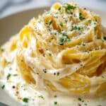 This Homemade Alfredo Sauce recipe delivers the creamiest, easiest-to-make sauce perfect for fettuccine pasta. Made with butter, heavy cream, and a blend of Parmesan and Pecorino Romano cheeses, it’s rich, flavorful, and ready in under 30 minutes. The sauce can be customized with garlic and fresh parsley for added depth and freshness. It’s a classic Italian-inspired dish ideal for comforting dinners.