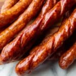 This homemade pepperoni recipe delivers a flavorful, spicy cured sausage perfect for pizzas, sandwiches, or snacking. Made with a blend of ground pork and beef, seasoned with a special pepperoni seasoning mix, and cured for 24 hours, these sausages are then baked to safe perfection, resulting in authentic, savory, and smoky pepperoni slices you can make easily at home.