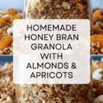 This Honey Bran Granola with Almonds & Apricots is a wholesome, crunchy breakfast or snack option packed with rolled oats, wheat bran, nuts, seeds, and sweet dried apricots. Baked to a perfect golden brown with warming spices and natural honey, it offers a delightful balance of sweetness and texture, making it a nutritious homemade granola to enjoy any time of day.