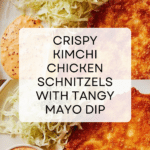 Keywords: kimchi chicken schnitzel, Korean fusion, crispy schnitzel, kimchi mayonnaise, fried chicken recipe, cabbage salad