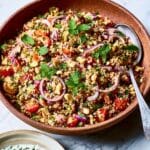 Kisir is a vibrant Turkish bulgur salad bursting with fresh herbs, tangy pomegranate, and a hint of spice. This colorful dish is perfect as a light lunch or a flavorful side, offering a delightful balance of textures and flavors.